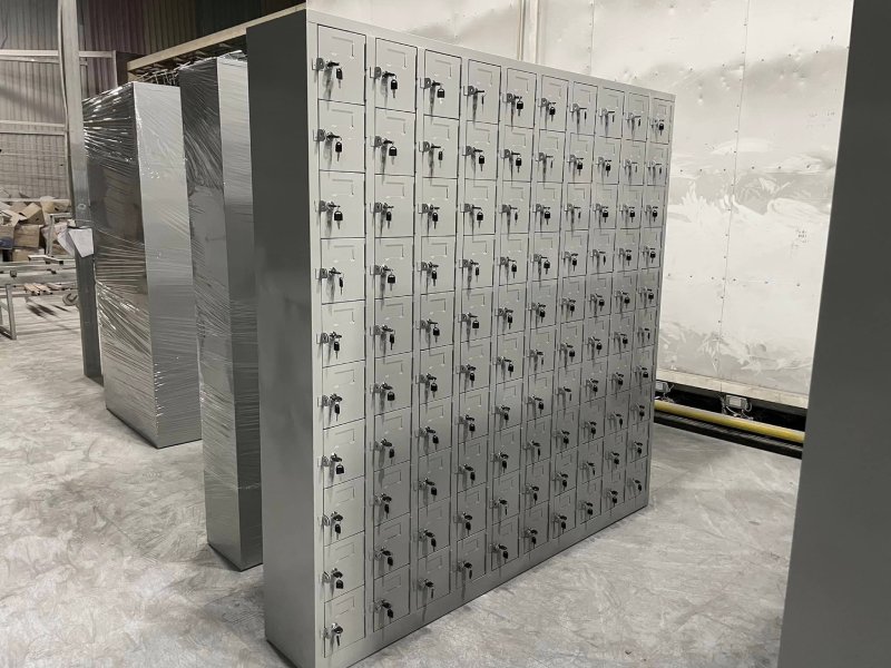 Tủ locker sắt được sử dụng phổ biến tại nhà máy, khu công nghiệp, văn phòng lớn, phòng tập và các cơ sở dịch vụ. Đặc điểm của dòng tủ này là nhiều ngăn riêng biệt, phục vụ nhu cầu cất giữ đồ cá nhân cho từng người sử dụng. Khi sản xuất theo yêu cầu, tủ locker có thể điều chỉnh số ngăn, kích thước mỗi ngăn và loại khóa phù hợp với mục đích sử dụng. Tủ sắt locker đặt tại cơ sở sản xuất ở Hà Nội thường được ưu tiên về độ bền, kết cấu chắc chắn và khả năng chịu va đập, phù hợp với môi trường sử dụng thường xuyên, mật độ cao.
