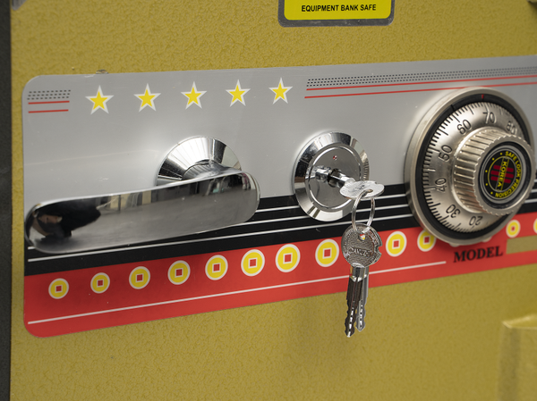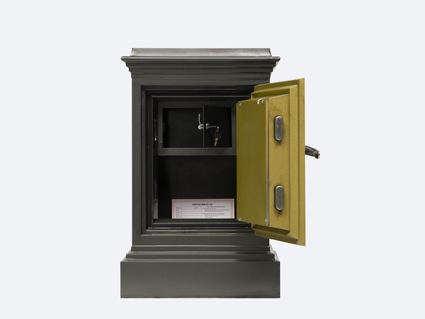 Thân và cửa két sắt: được làm từ hai lớp thép nguyên khối siêu cứng và bên trong được đúc một lớp bột chống cháy.