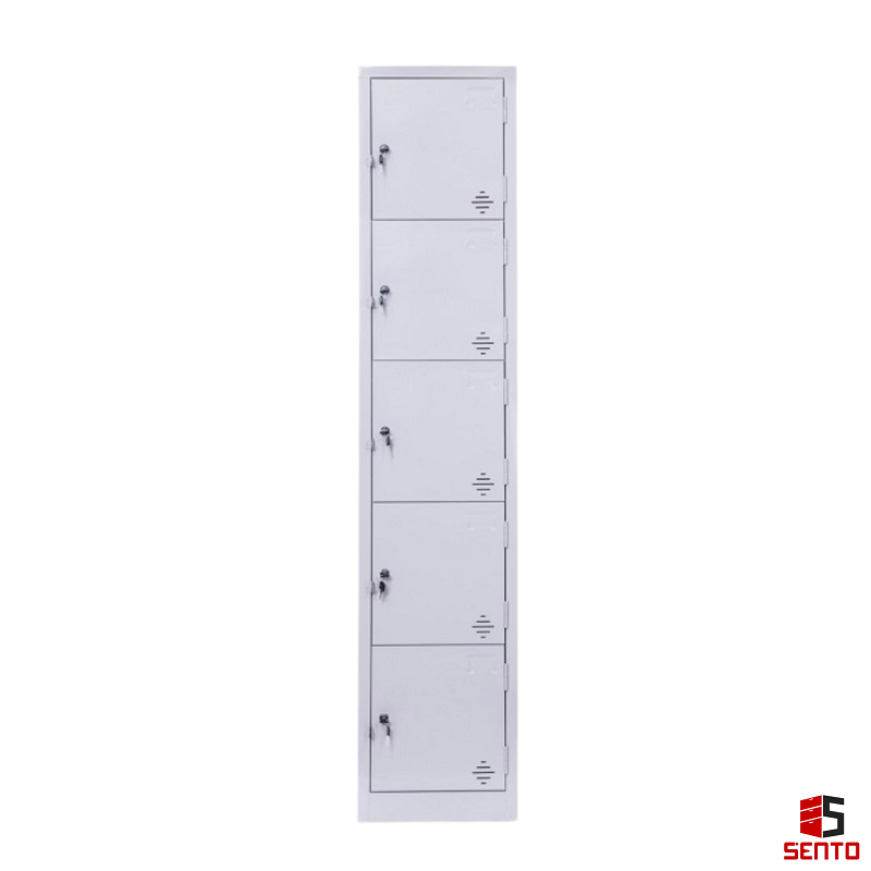 Tủ locker 5 cánh 1 khoang 5C1K là mẫu tủ được ưa chuộng trong các văn phòng, phòng thay đồ nhân viên và khu vực công cộng có diện tích hạn chế. Tủ được thiết kế dạng đứng với 5 ngăn xếp dọc trong cùng một khoang, mỗi ngăn có khóa riêng, giúp người dùng dễ dàng phân chia và quản lý đồ dùng cá nhân. Chất liệu sắt sơn tĩnh điện mang lại độ bền cao, hạn chế cong vênh và hoen gỉ trong quá trình sử dụng. Kích thước gọn gàng, kết cấu hàn liền khối giúp tủ đứng vững, phù hợp với nhiều không gian khác nhau mà vẫn đảm bảo tính gọn gàng và chuyên nghiệp.