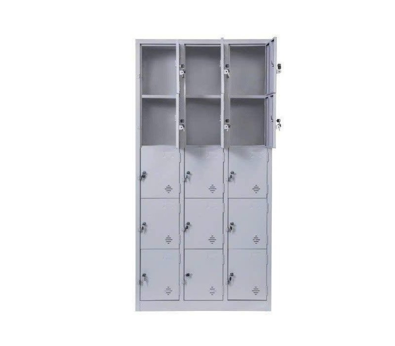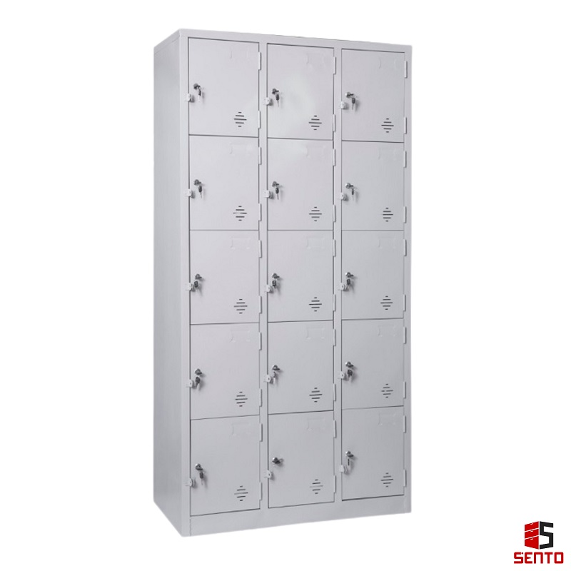 Tủ locker 15 ngăn LK15 là giải pháp lưu trữ tối ưu cho các đơn vị có số lượng người sử dụng lớn nhưng diện tích bố trí hạn chế. Các ngăn được chia nhỏ, phù hợp để cất giữ tư trang cá nhân gọn nhẹ. Chất liệu sắt sơn tĩnh điện giúp tủ chịu được môi trường ẩm, hạn chế gỉ sét và dễ dàng bảo quản. Mẫu tủ này thường xuất hiện trong nhà xưởng, khu công nghiệp hoặc khu vực thay đồ tập thể.