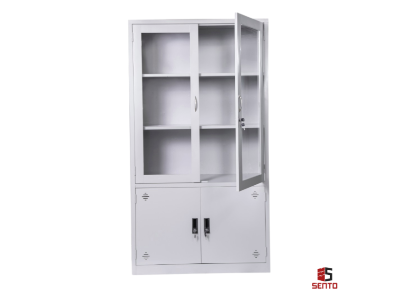 Một trong những ưu điểm nổi bật của Nội Thất Sento là thiết kế tập trung vào tính thực tế. Các mẫu tủ sắt cánh kính được thiết kế tối giản, kích thước tiêu chuẩn, dễ bố trí trong nhiều không gian khác nhau như phòng hành chính, kế toán, lãnh đạo hay khu lưu trữ chung. Màu sắc trung tính như trắng, ghi, xám giúp tủ dễ phối với nội thất văn phòng hiện đại.