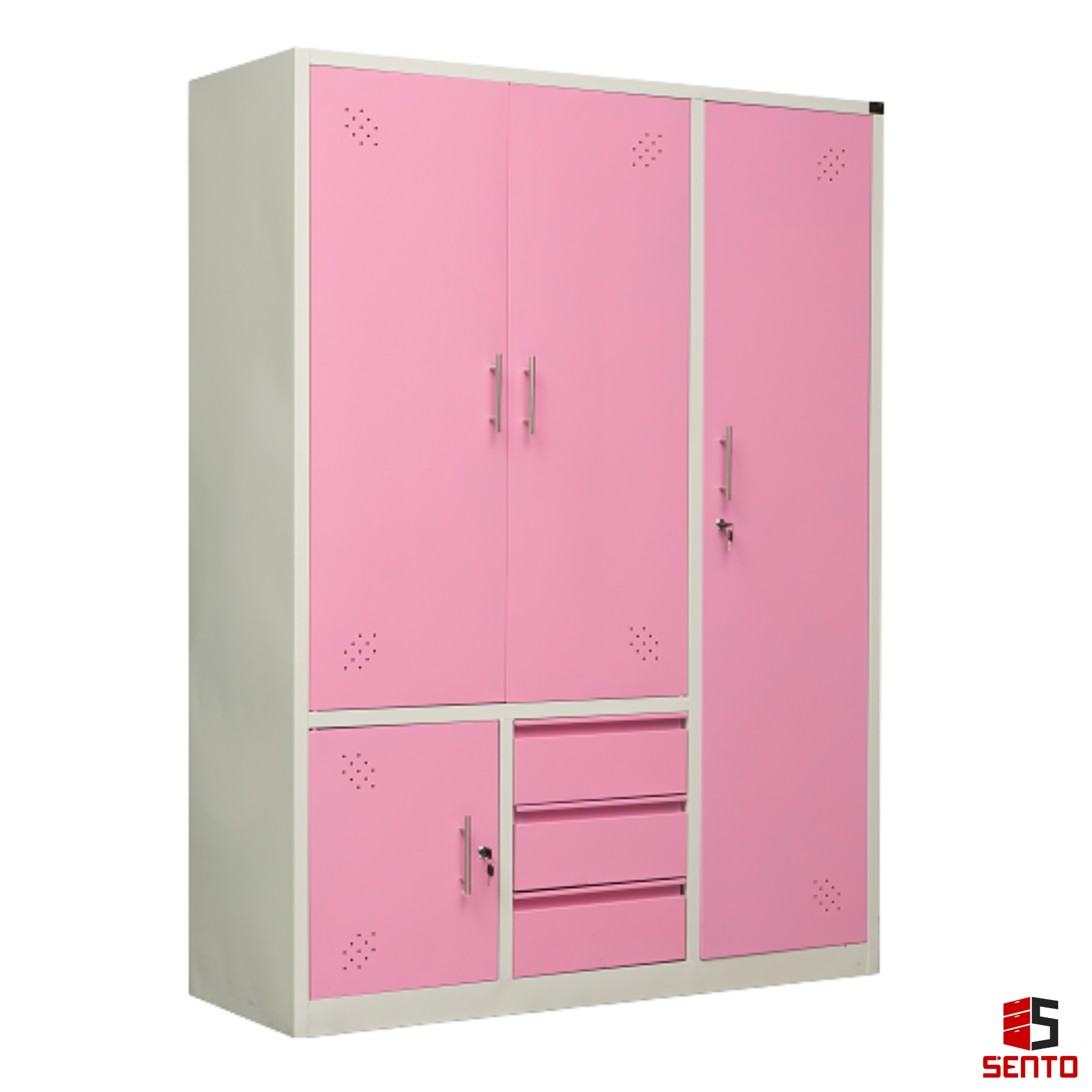 Tủ Sắt 3 Buồng 3 Ngăn Kéo - 3B3NK là sản phẩm kết hợp giữa hai gam màu trắng - hồng là chủ đạo mang sắc thái hài hòa, hiện đại. Phần thân tủ có độ bóng cao giúp tủ luôn mới và sạch. Tủ có chất liệu sắt sơn tĩnh điện nên vô cùng chắc chắn và cứng cáp.