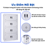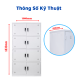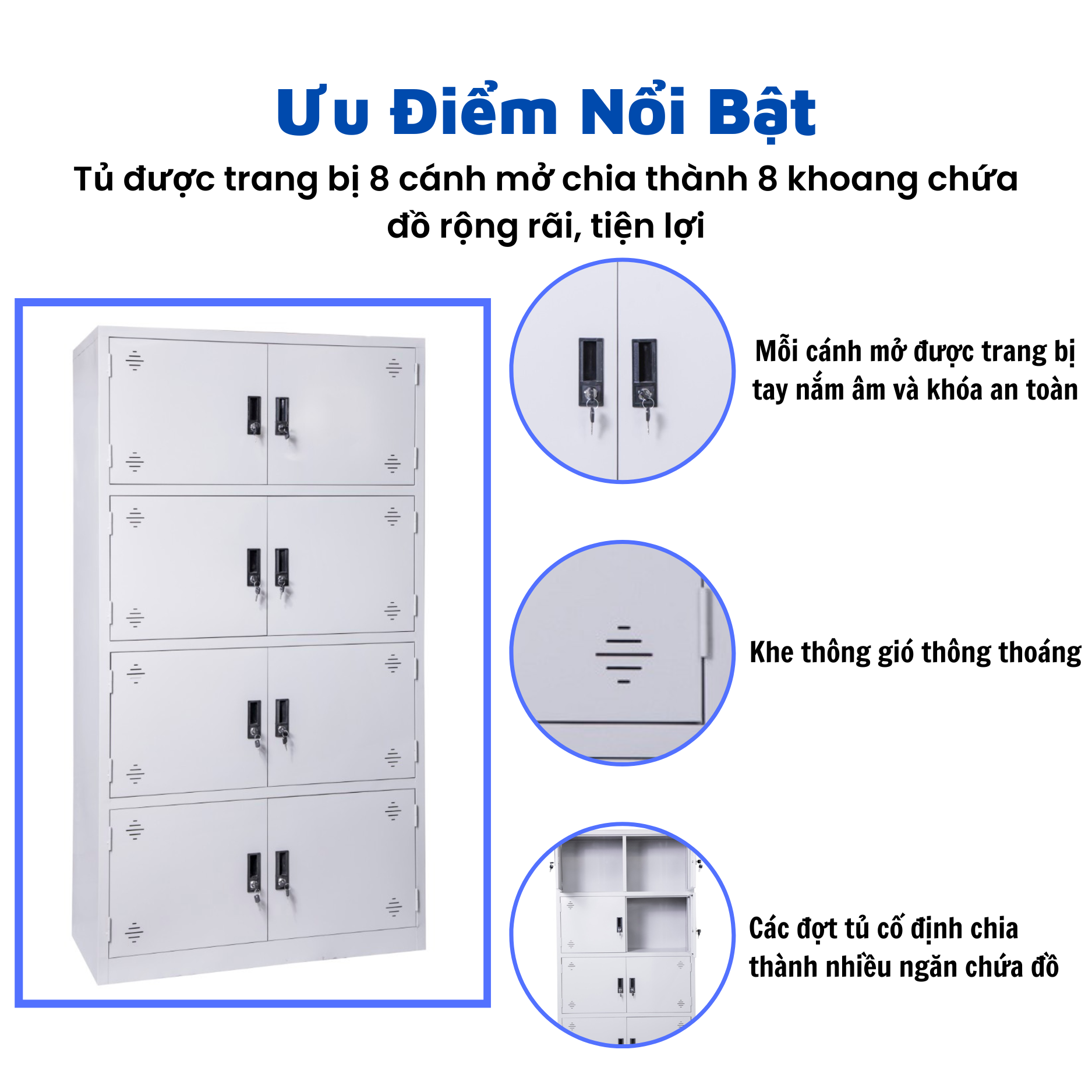 - Kiểu dáng: Tủ gồm 8 cánh, mỗi cánh là 1 khoang riêng biệt, có khoá liền tay nắm để mở.