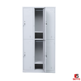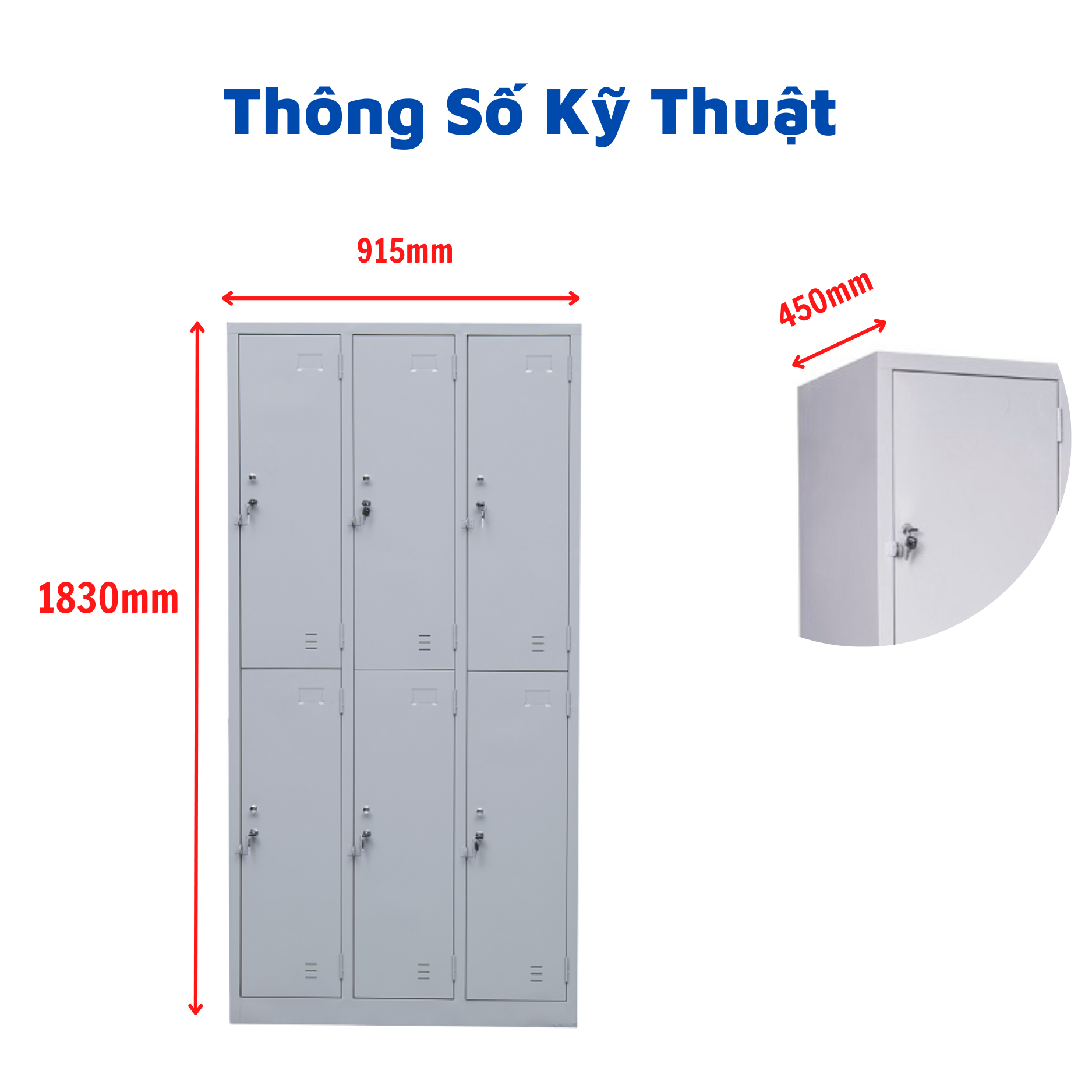 Tủ có hình chữ nhật, bao gồm 6 ngăn tủ bằng nhau được dùng để đựng đồ vật cá nhân hoặc hồ sơ, tài liệu quan trọng. Mỗi ngăn tủ có một cánh cửa và ổ khóa riêng biệt, và khe thoáng khí rất lạ mắt.