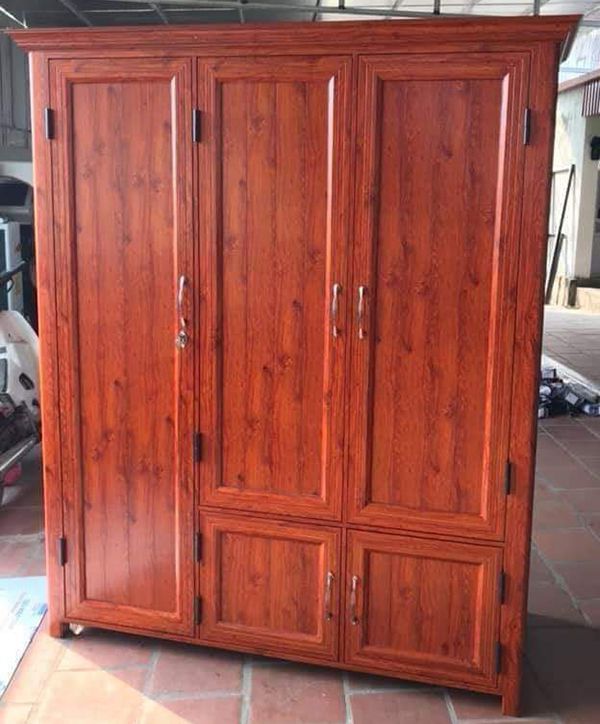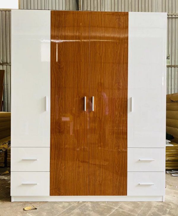 Tủ gỗ công nghiệp có bề mặt láng mịn, được xử lý hoa văn đẹp mắt, màu sắc hiện đại. Thiết kế của tủ quần áo loại này không chỉ giới hạn chức năng chỉ bảo quản quần áo, đồ dùng, mà còn thường được kết hợp thêm kệ đựng túi xách, bàn trang điểm…
