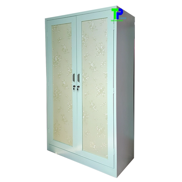 Tủ quần áo sắt sơn tĩnh điện 2BK là dòng tủ gia đình gồm có 2 khoang. Bên ngoài là 2 cánh dài bằng kính được trang trí bằng hoa văn tinh tế. Bên trong có là thanh suốt treo quần áo và khay để đồ.